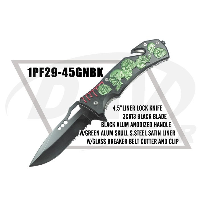W/GREEN ALUM SKULL S.STEEL SATIN LINER