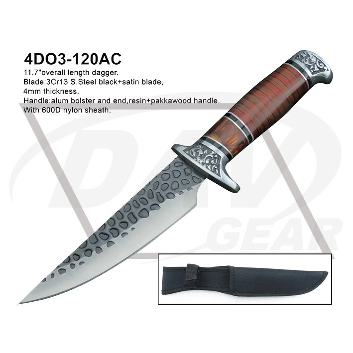 Blade:3Cr13 S.Steel black+satin blade,4mm thickness.6.3"length