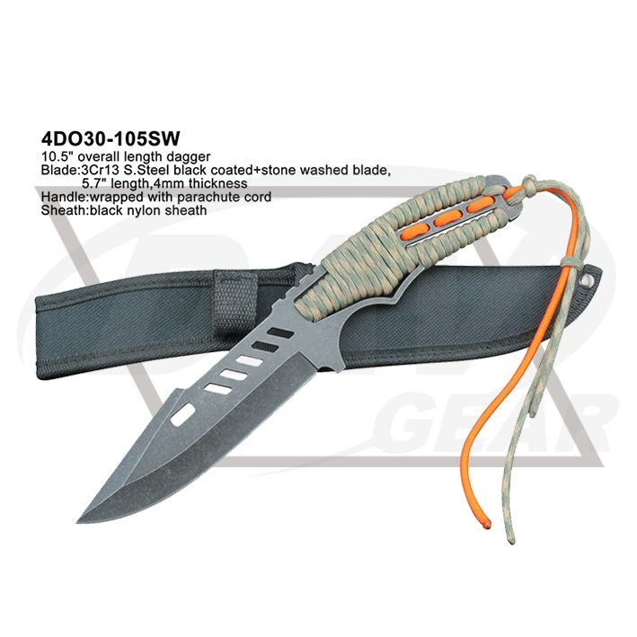 Blade:3Cr13 S.Steel black coated+stone washed blade,5.7" length,4mm thickness