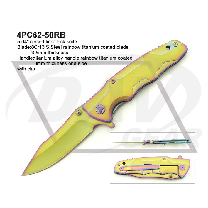 Blade:8Cr13 S.Steel rainbow titanium coated blade,3.5mm thickness