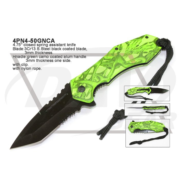 Hnadle:green camo coated alum handle,3mm thickness one side.