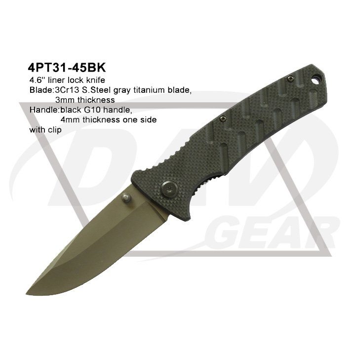 Blade:3Cr13 S.Steel gray titanium blade,3mm thickness