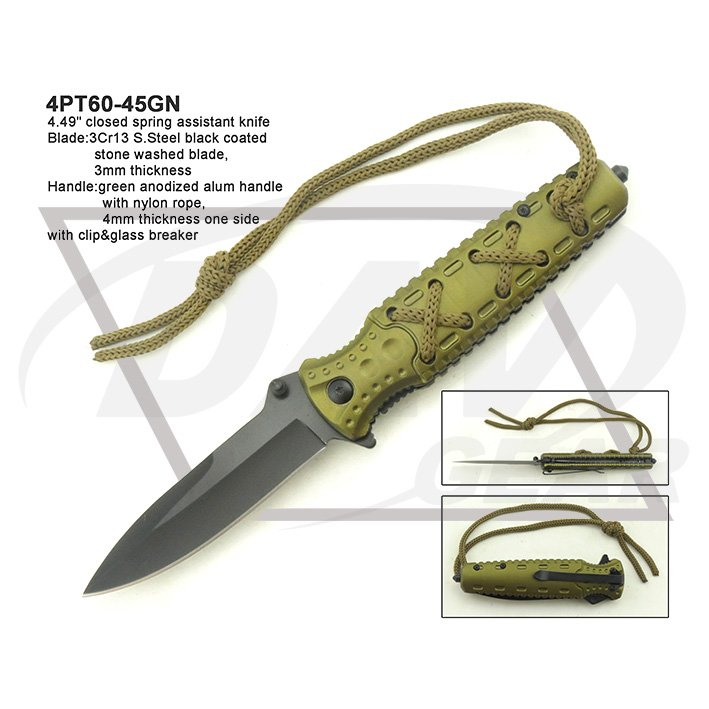 Handle:green anodized alum handle with nylon rope,4mm thickness one side