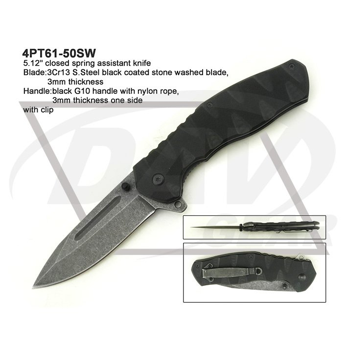 Blade:3Cr13 S.Steel black coated stone washed blade,3mm thickness