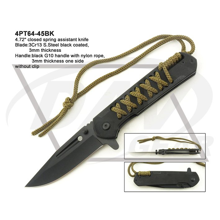Handle:black G10 handle with nylon rope,3mm thickness one side