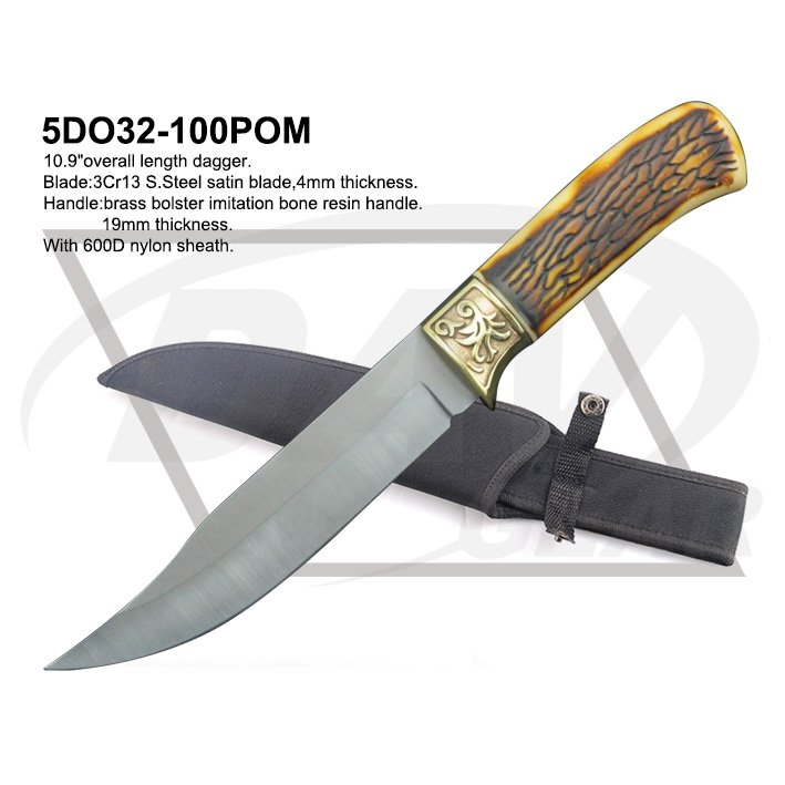 Handle:brass bolster imitation bone resin handle. 19mm thickness.