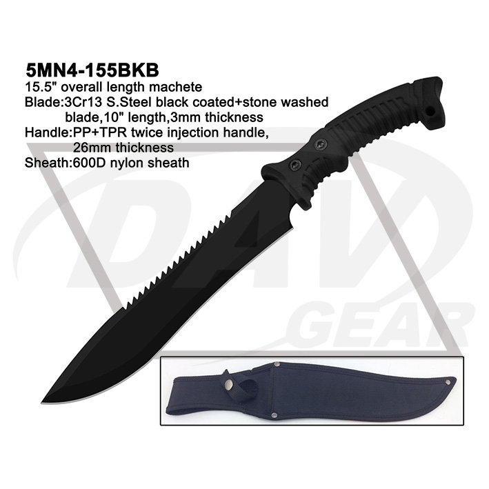 Ready to Ship !14.5 Inches Machete with Reverse Serrations Black Stainless Steel Blade w/ Reverse Serrations, Full Tang , Nylon Sheath, Outdoor, Hunt, Camp, Hike, Survival