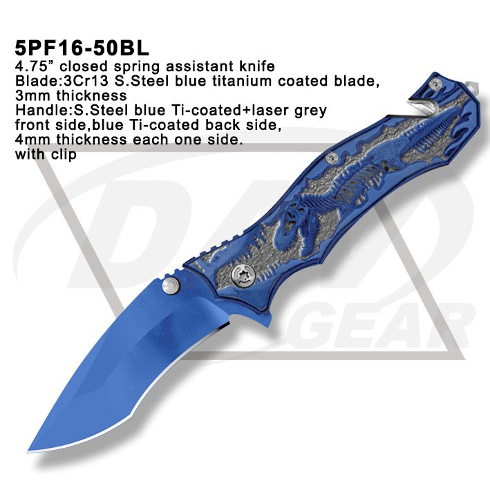 Blade:3Cr13 S.steel blue Ti-coated blade,