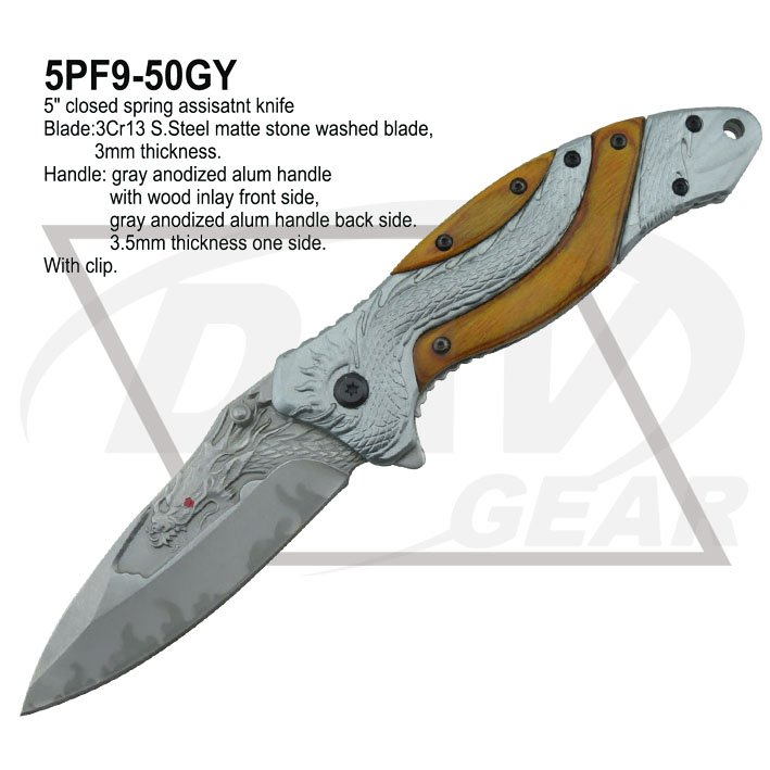 Handle: gray anodized alum handle with wood inlay front side,gray anodized alum handle back side,3.5mm thickness one side.