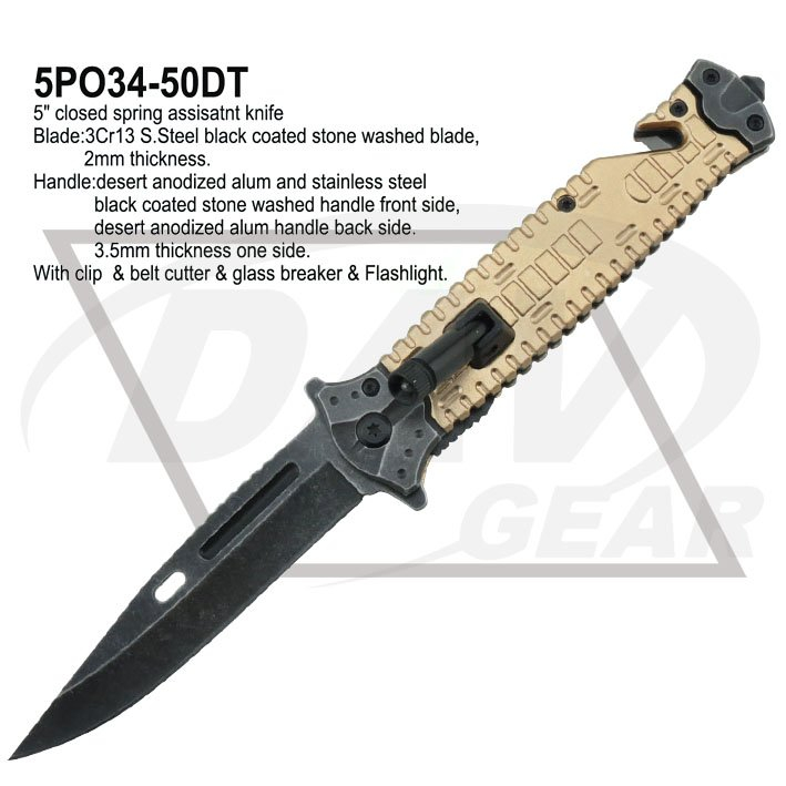 With clip & belt cutter & glass breaker & Flashlight.