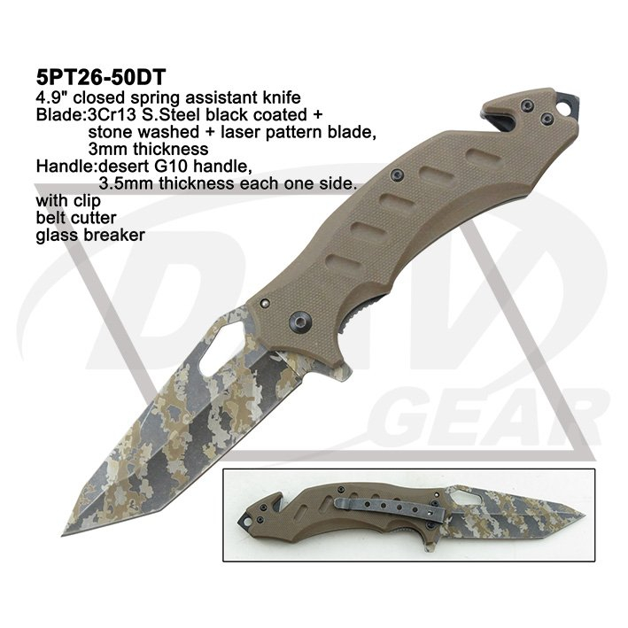 Blade:3Cr13 S.Steel black coated + stone washed + laser pattern blade,3mm thickness