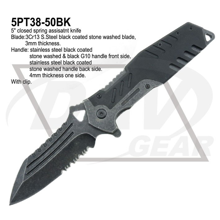 Blade:3Cr13 S.Steel black coated stone washed blade,3mm thickness.