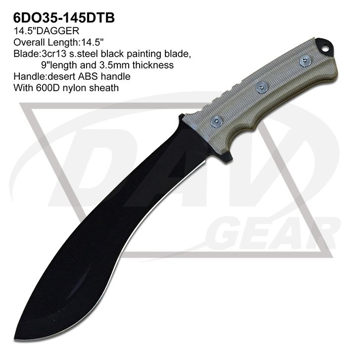 Blade:3cr13 s.steel black painting blade,9"length and 3.5mm thickness