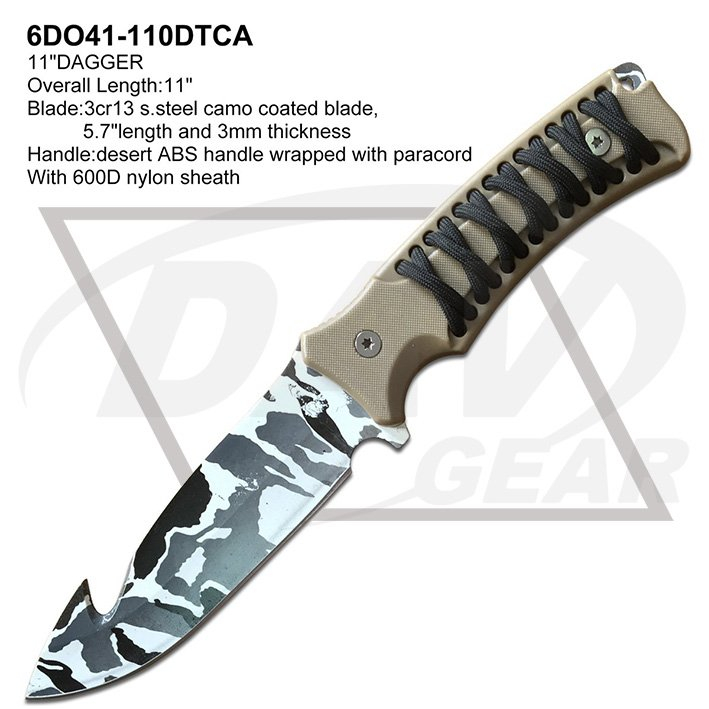 Blade:3cr13 s.steel camo coated blade,5.7"length and 3mm thickness