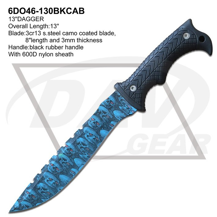 Blade:3cr13 s.steel camo coated blade,8"length and 3mm thickness