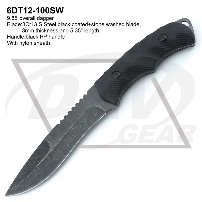 Blade:3Cr13 S.Steel black coated+stone washed blade,