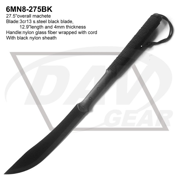 Ready to Ship !14.5 Inches Machete with Reverse Serrations Black Stainless Steel Blade w/ Reverse Serrations, Full Tang , Nylon Sheath, Outdoor, Hunt, Camp, Hike, Survival