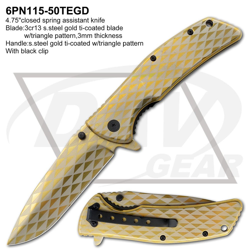 Handle:s.steel gold ti-coated w/triangle pattern