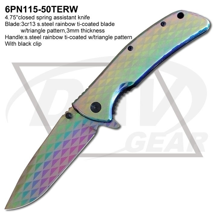 Blade:3cr13 s.steel rainbow ti-coated blade
