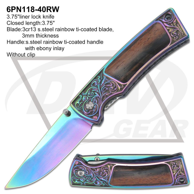 Blade:3cr13 s.steel rainbow ti-coated blade,