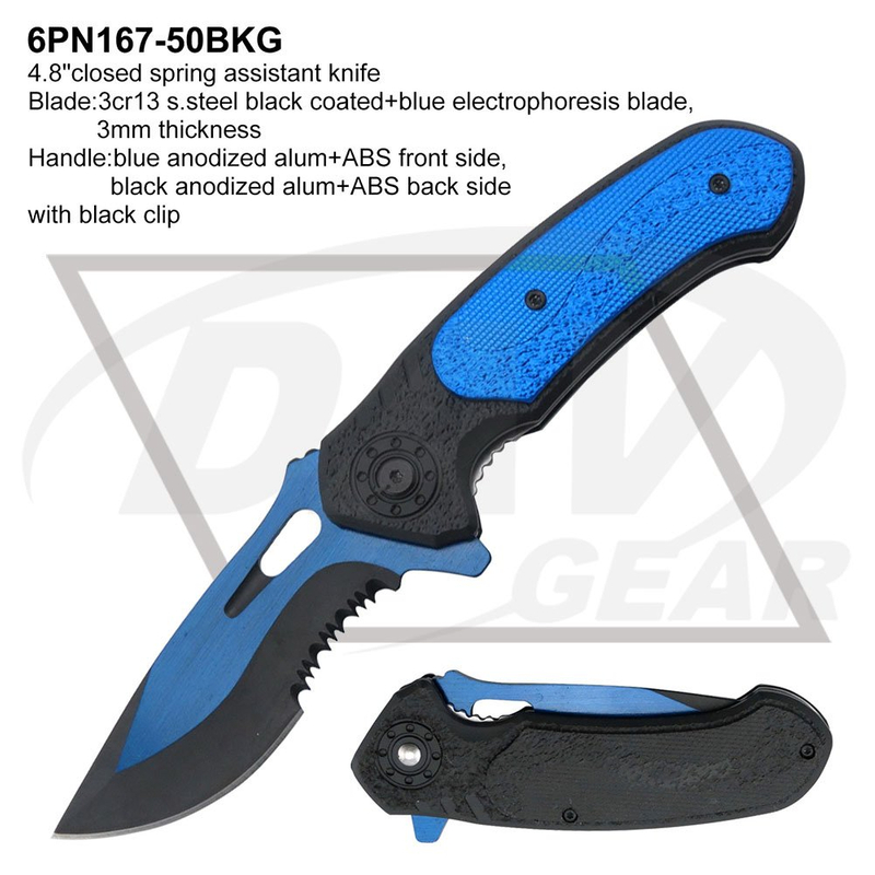Blade:3cr13 s.steel black coated+blue electrophoresis blade,