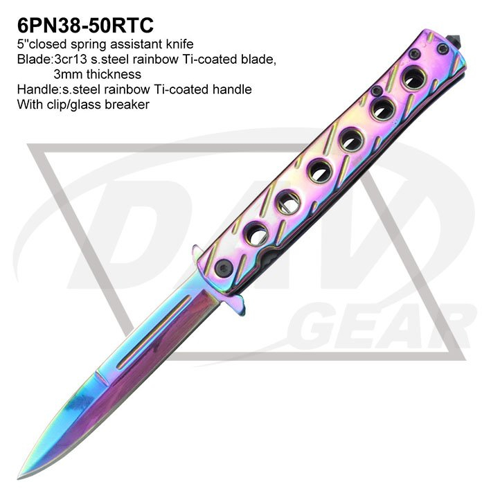 Blade:3cr13 s.steel rainbow Ti-coated blade,