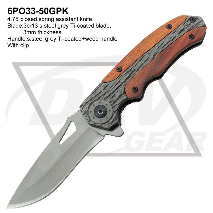 Blade:3cr13 s.steel grey Ti-coated blade,