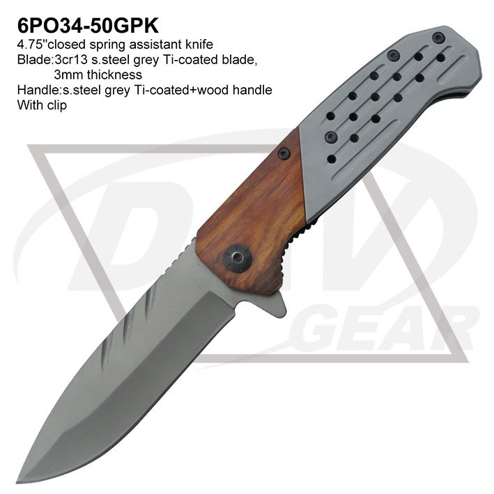 Blade:3cr13 s.steel grey Ti-coated blade,