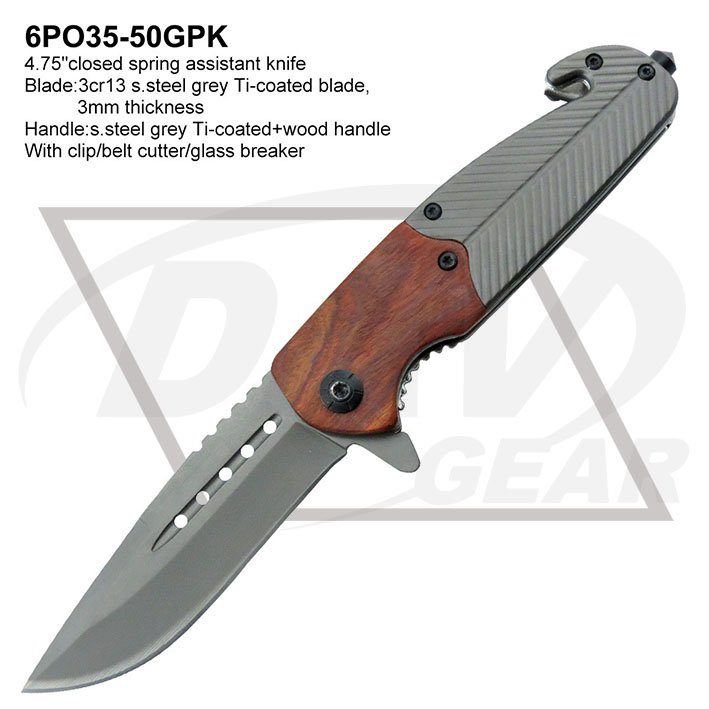 Blade:3cr13 s.steel grey Ti-coated blade,