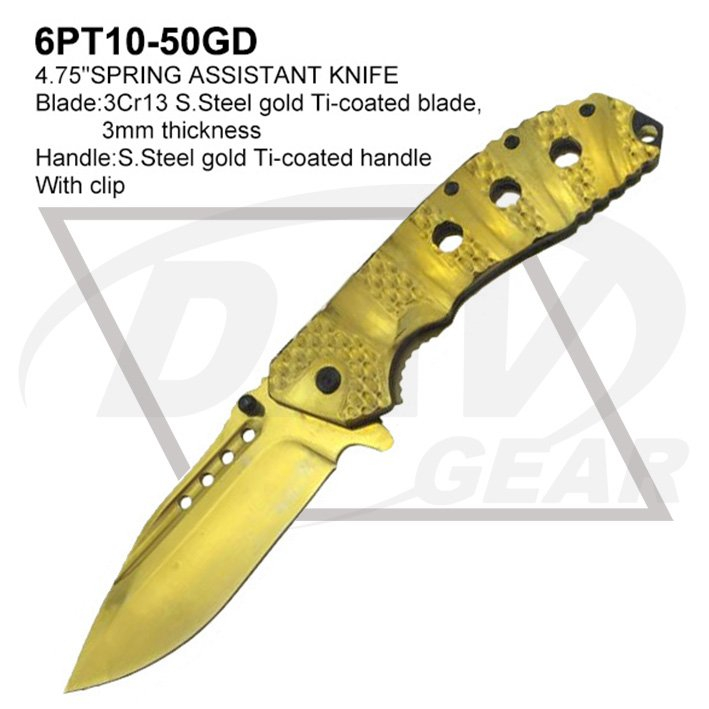 Blade:3Cr13 S.Steel gold Ti-coated blade,3mm thickness