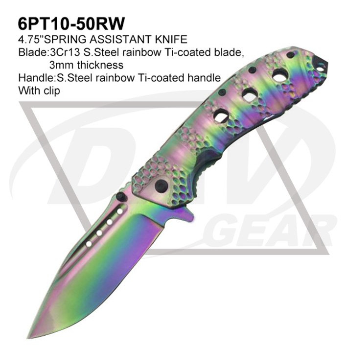 Blade:3Cr13 S.Steel rainbow Ti-coated blade,3mm thickness