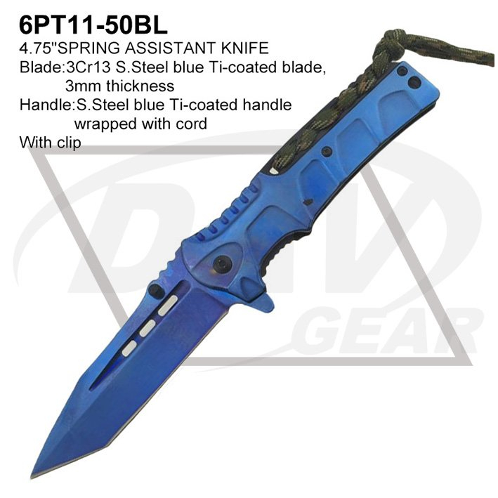 Handle:S.Steel blue Ti-coated handle wrapped with cord