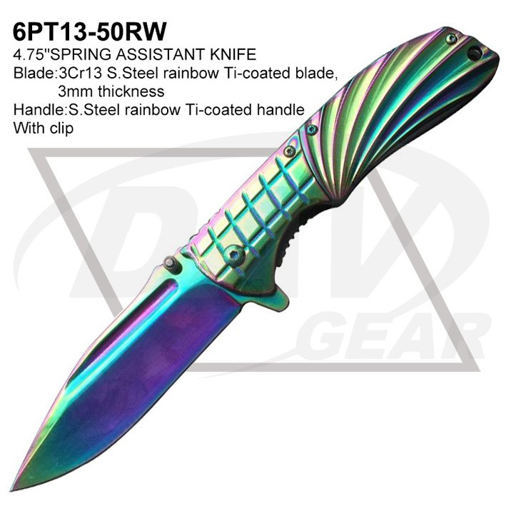 Blade:3Cr13 S.Steel rainbow Ti-coated blade,3mm thickness