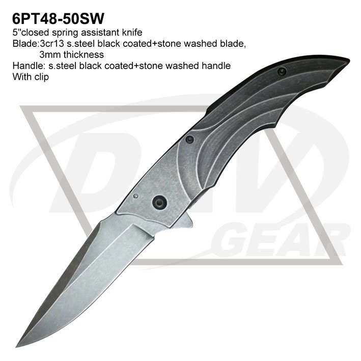 Blade:3cr13 s.steel black coated+stone washed blade,3mm thickness