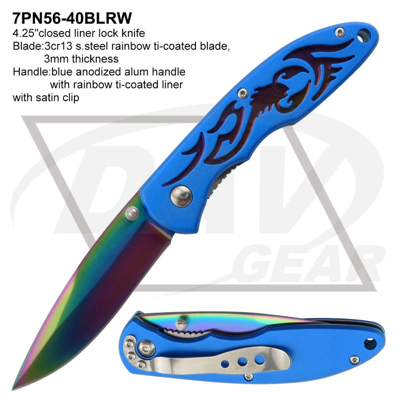 Blade:3cr13 s.steel rainbow ti-coated blade,