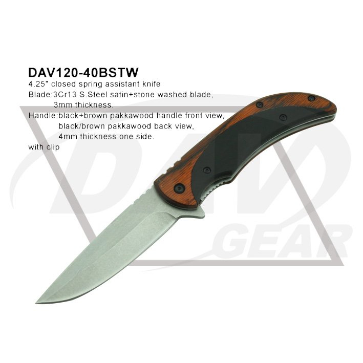 Blade:3Cr13 S.Steel satin+stone washed blade,3mm thickness.