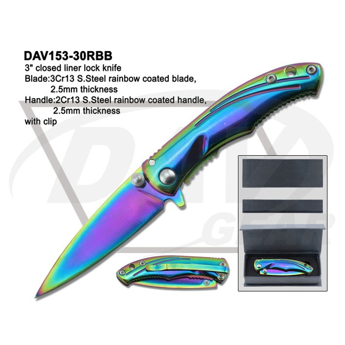 Blade:3Cr13 S.Steel rainbow coated blade,2.5mm thickness