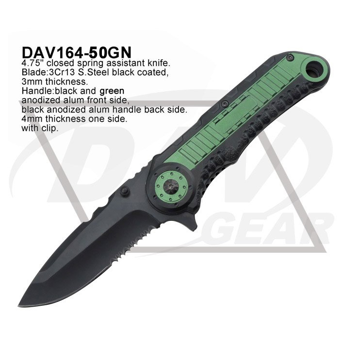 Handle:black and green anodized alum inlay front side,black anodized alum handle back side.4mm thickness one side.