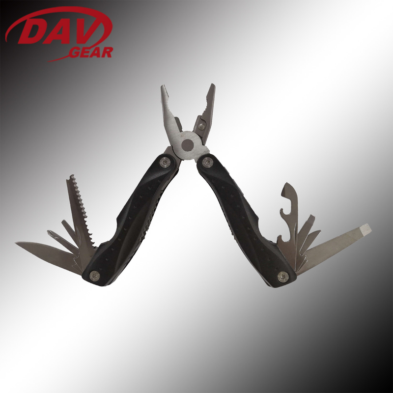 FUNCTIONS:THREE PLIERS,SCALE,KNIFE,SAW BLADE,CAN OPENER,FILE,TWO SCREWDRIVERS,BOTTLE OPENER.